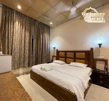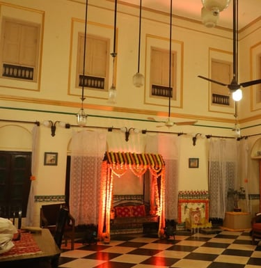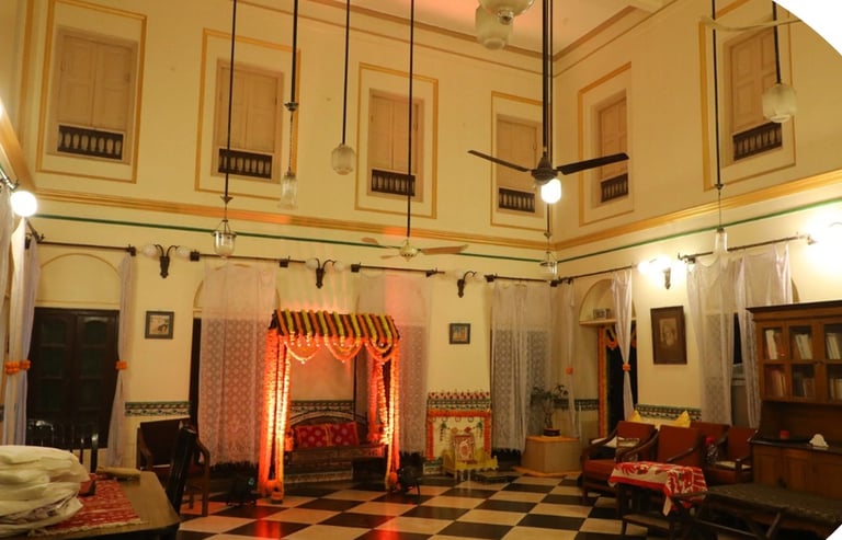 Indulge in a luxurious stay with our heritage-inspired accommodations and top-notch amenities at Ratnakar Bhawan Heritage Homestay. Experience sheer luxury with our white, gold, and black color theme.